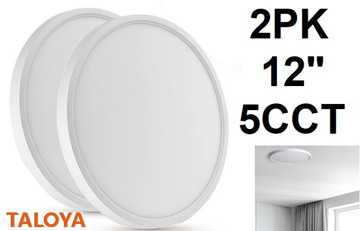 2pk taloya LED Flush Mount Ceiling Light Fixture - 12" - 3000k/3500k/4000k/5000k/6500k - 120v - white (model: 8251)