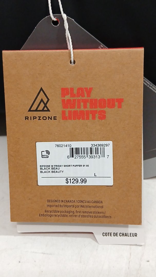 WOMEN'S RIPZONE FRIDAY SHORT PUFFER JACKET - LARGE - BLACK BEAUTY (STYLE: 334369297)