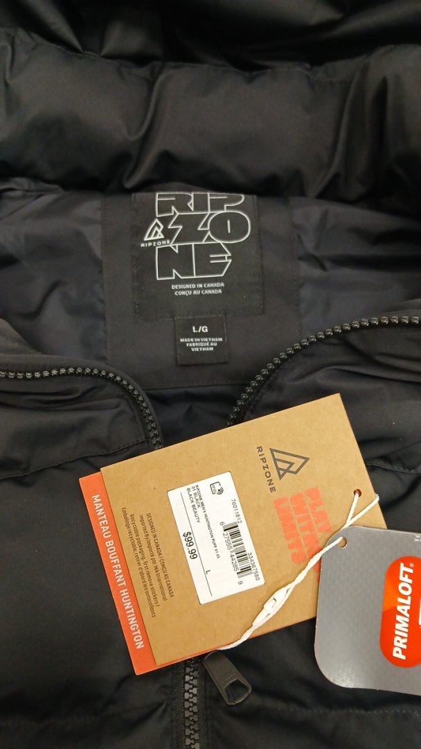 MEN'S RIPZONE Huntington Puffy HOODED Vest - LARGE - BLACK (STYLE: 334367580)