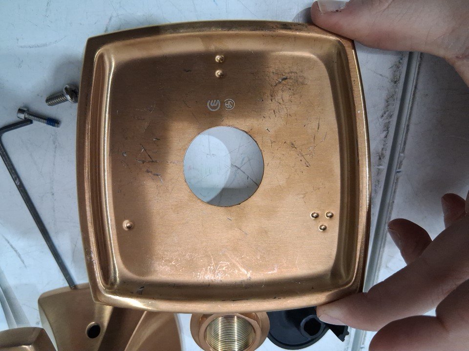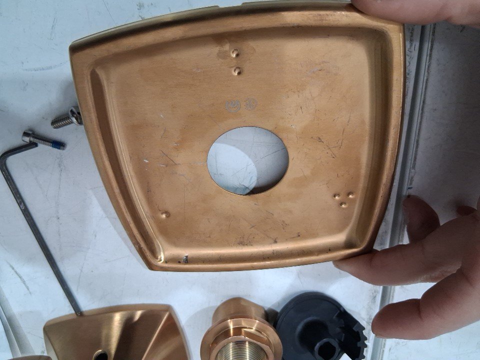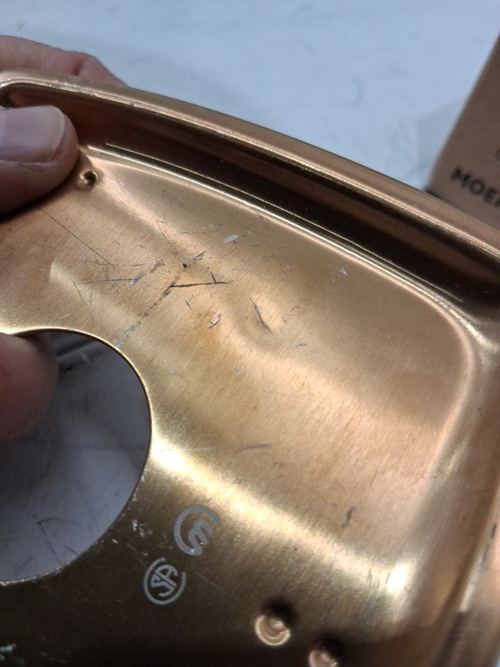 heavy scratching and one dent on the item due to shipping without proper packaging please see photos