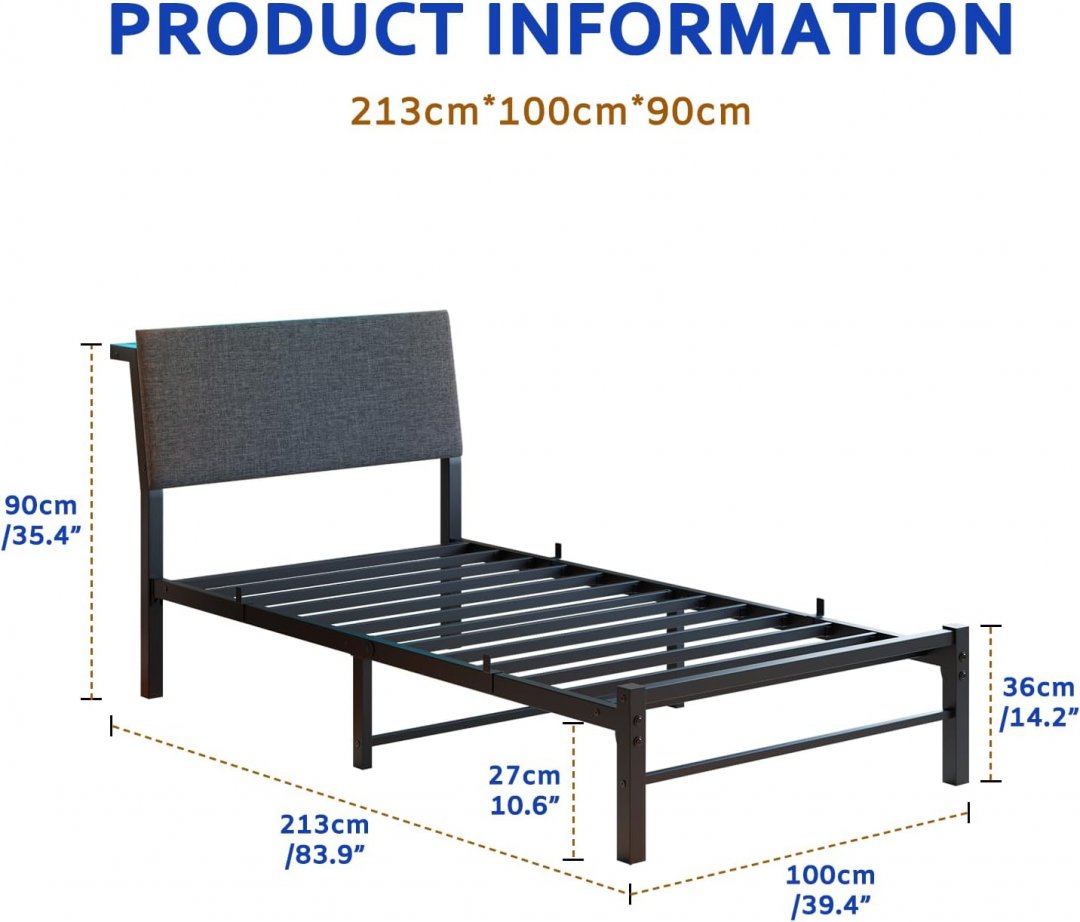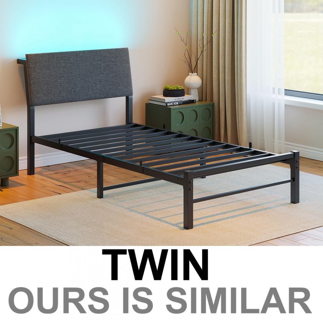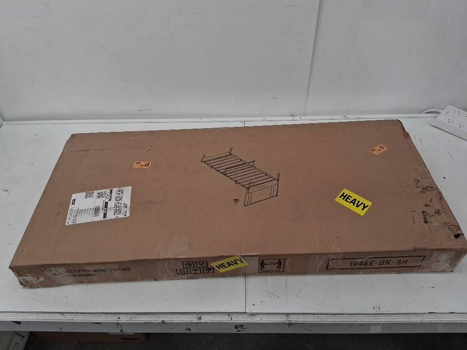 Metal bedframe with headboard - twin - gray/black - (model: 1046e-bk-sh)