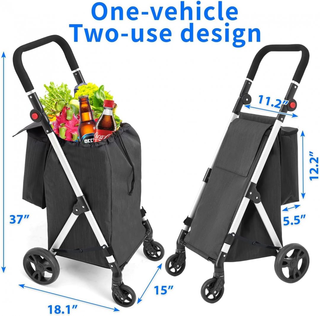KIFFLER FOLDABLE PORTABLE COMPACT LIGHTWEIGHT lined SHOPPING utility CART - 37" x 18" x 15" - black (model: zt-008)