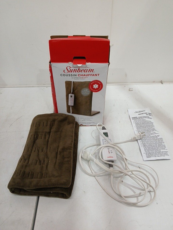 SUNBEAM XPRESSHEAT 6-SETTING PLUSH HEATING PAD - KING SIZE (12" X 24") - BROWN (MODEL: 2013-760-CNR)