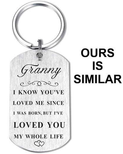 DOG TAG KEYCHAIN GIFT FOR GRANDMA "GRANDMA YOU HAVE LOVED ME SINCE I WAS BORN, I HAVE LOVED YOU MY WHOLE ENTIRE LIFE" - BLACK