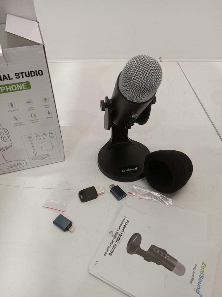 ZealSound USB Condenser Microphone with USB-C Adapter for Phones and 3.5mm Headphone Jack - Black (Model: K66)