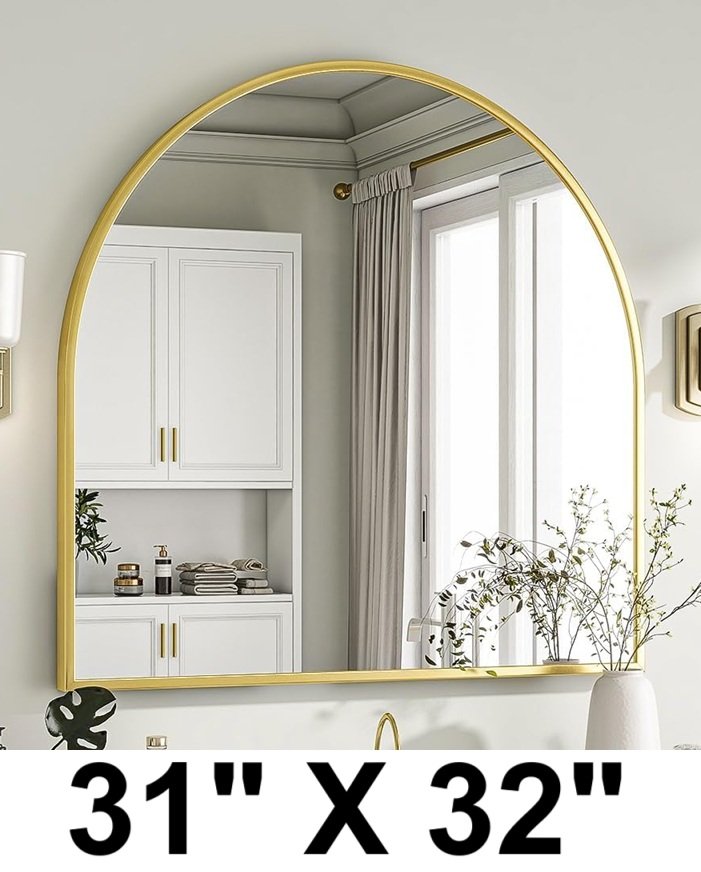 VooBang Arched Wall Mirror with Metal Frame - 31" X 32" - GOLD