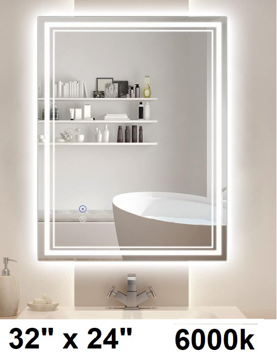 SaniteModar direct wired LED Bathroom Mirror with Lights, Dimmable 3 Brighter Color, Anti Fog -Horizontal/Vertical - 32" x 24" - silver ( model:‎BM-32 x 24-1-NEW)