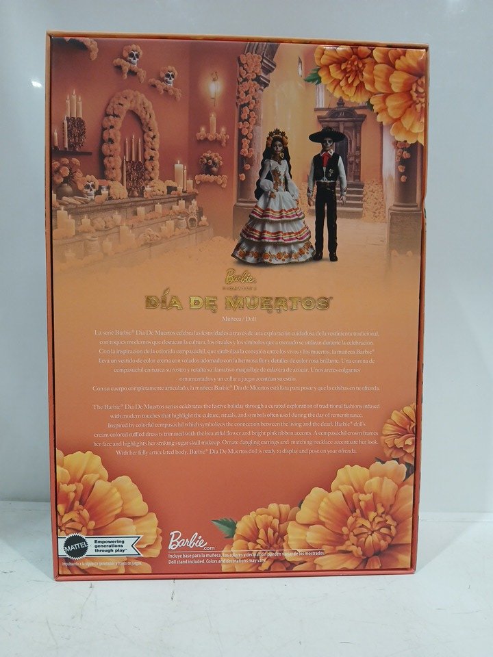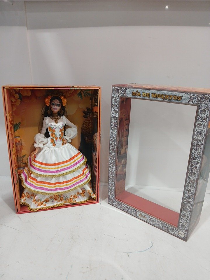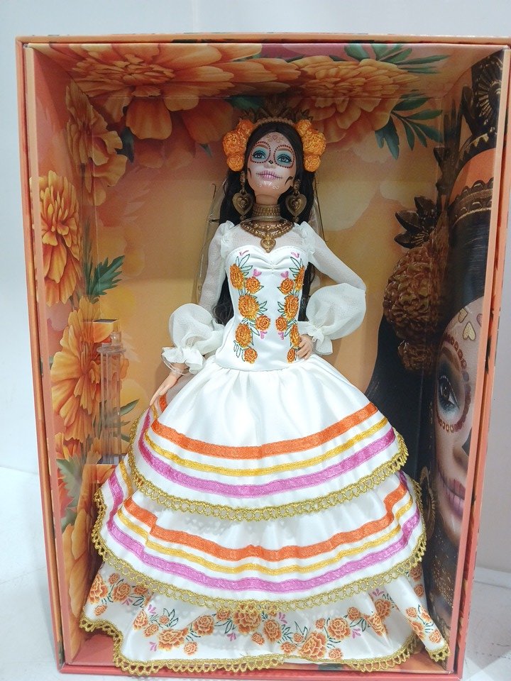 BARBIE SIGNATURE DIA DE MUERTOS 2025 Collectible in Ruffled Cream Gown Trimmed with Marigolds and Ribbon, Flower Crown and Calavera Face Paint - white/orange - (model: jbj05)
