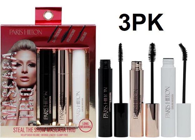 3PK PARIS HILTON Steal The Show Mascara Trio - Long Wearing Lengthening, Volumizing, Curling Mascara - BLACK