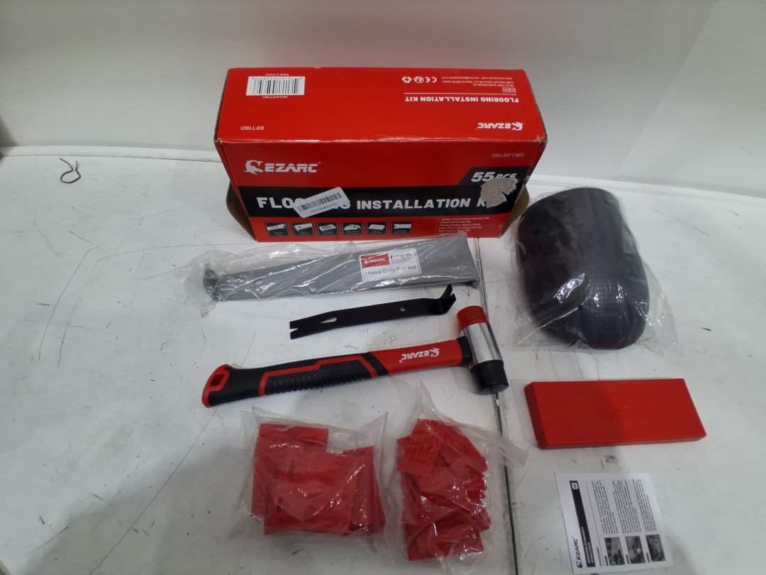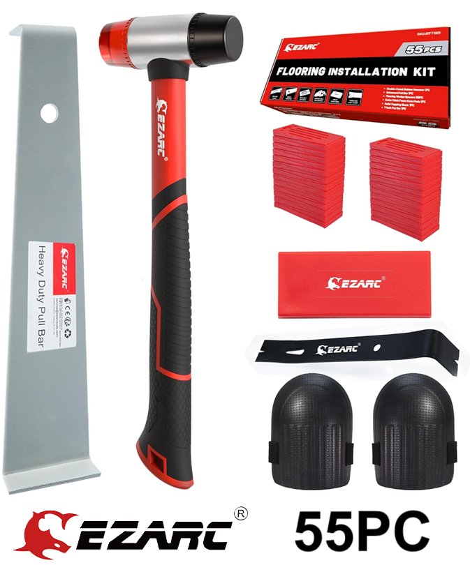 55pc EZARC LAMINATE WOOD FLOORING INSTALLATION KIT WITH SPACERS PULL BAR RUBBER TAPPING BLOCK DOUBLE FACED MALLET and knee pads (model:81FT1901)