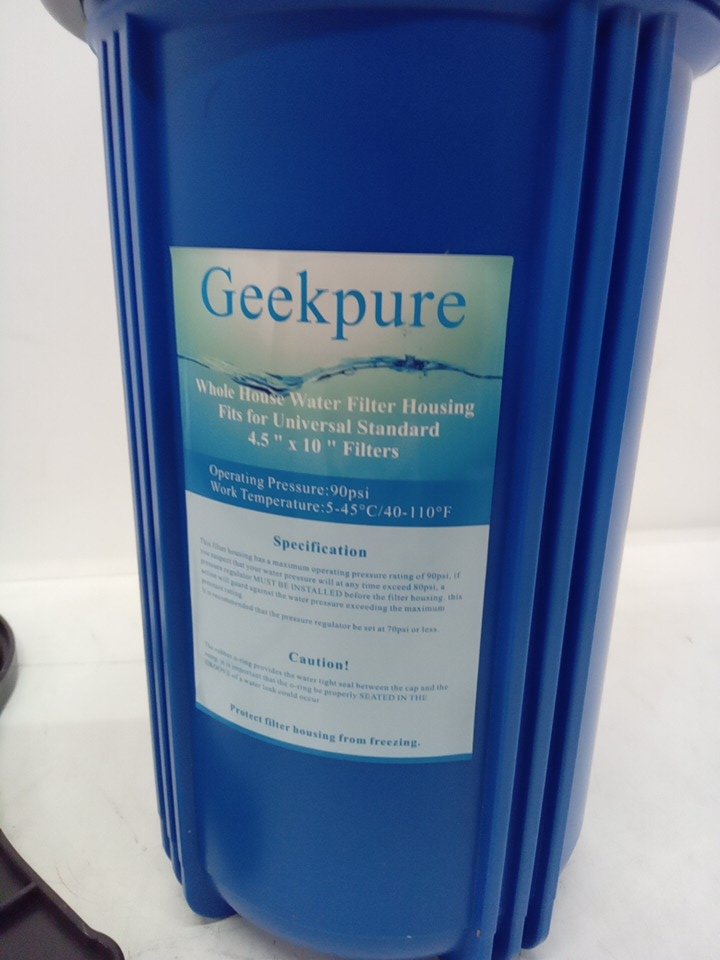 GEEKPURE WHOLE HOUSE WATER FILTER HOUSING, FIT FOR 4.5" x 10" FILTERS - 1" INLET, 7" X 13" - BLUE/BLACK - (MODEL: BB-10B)