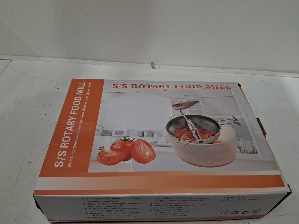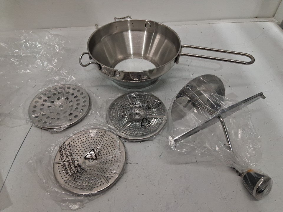 4pc Rotary food mill with interchangeable discs for straining, mashing, grinding - 7.5" x 3.1" -Stainless Steel
