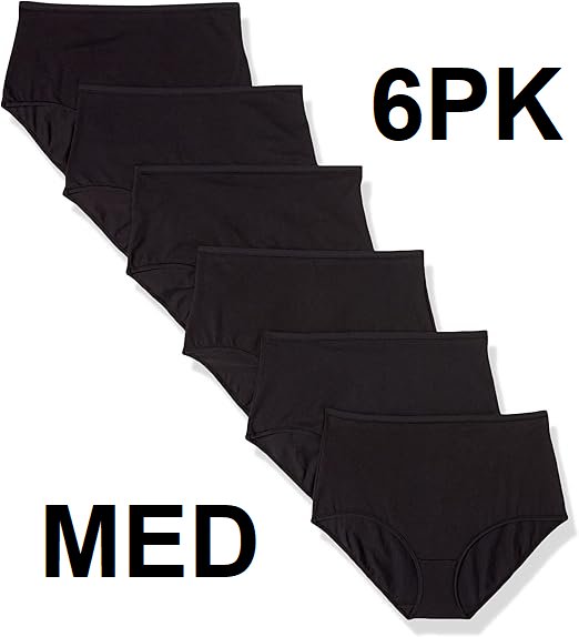 6PK WOMENS Amazon Essentials JERSEY COTTON BRIEF UNDERWEAR - MEDIUM - BLACK