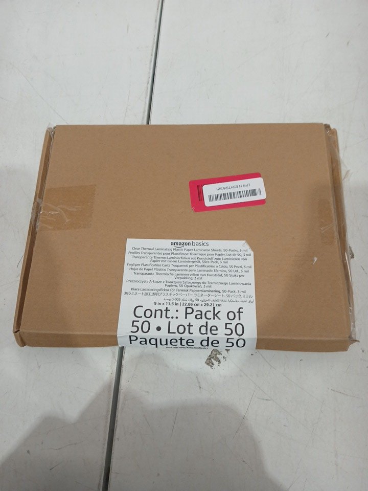 50pk Amazon Basics Clear thermal laminating plastic paper sheets - 3mil - 9" x 11.5"