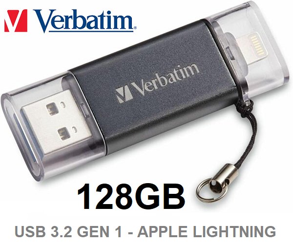 Verbatim Store 'n’ Go Dual USB 3.2 Gen 1 Flash Drive for Apple Lightning Devices – 128gb - Graphite (model: 71276)