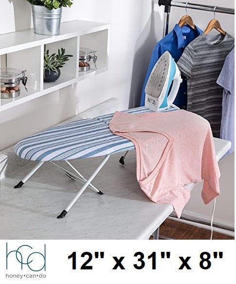 HONEY CAN DO FOLDING TABLETOP IRONING BOARD WITH IRON REST - 12" x 31" x 8" - BLUE/WHITE STRIPE (MODEL: BRD-09222)