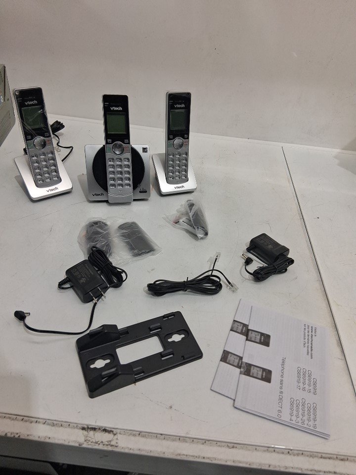 VTECH 3-HANDSET CORDLESS PHONES WITH CALLER ID/CALL WAITING - SILVER/BLACK (MODEL: CS6919-3)