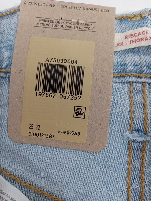 womens levi Ribcage Bell Jean - size 25 - Light Stone Wash