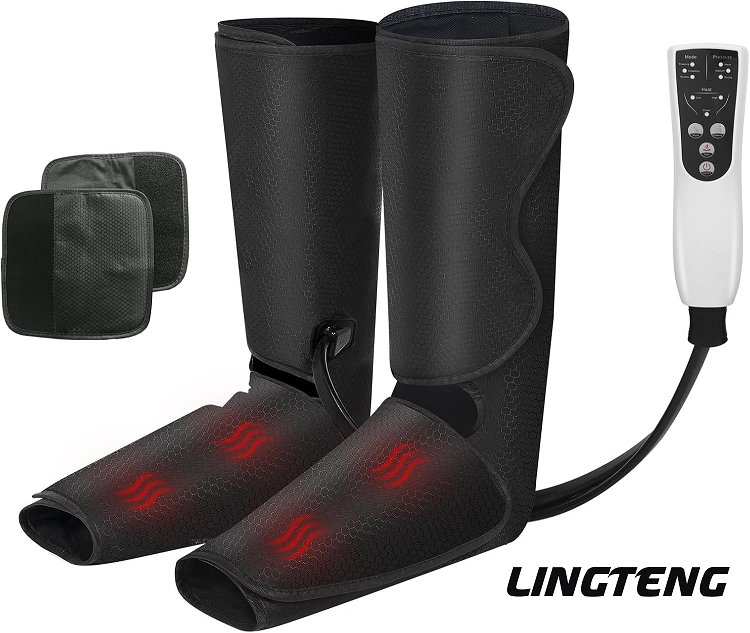 LINGTENG Air Compression Leg Massager with Foot Heat and Air Compression - one size fits most - black