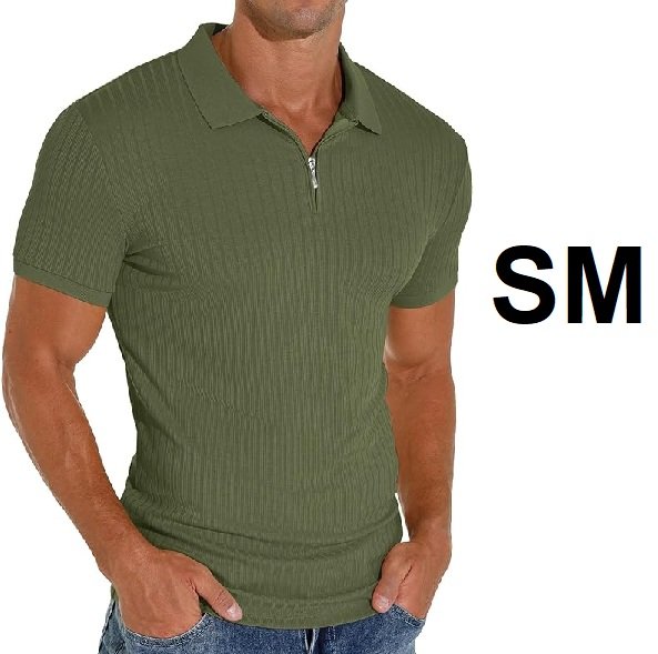 men's askdeer classic short sleeve slim fitting ribbed polo shirt - small - olive green