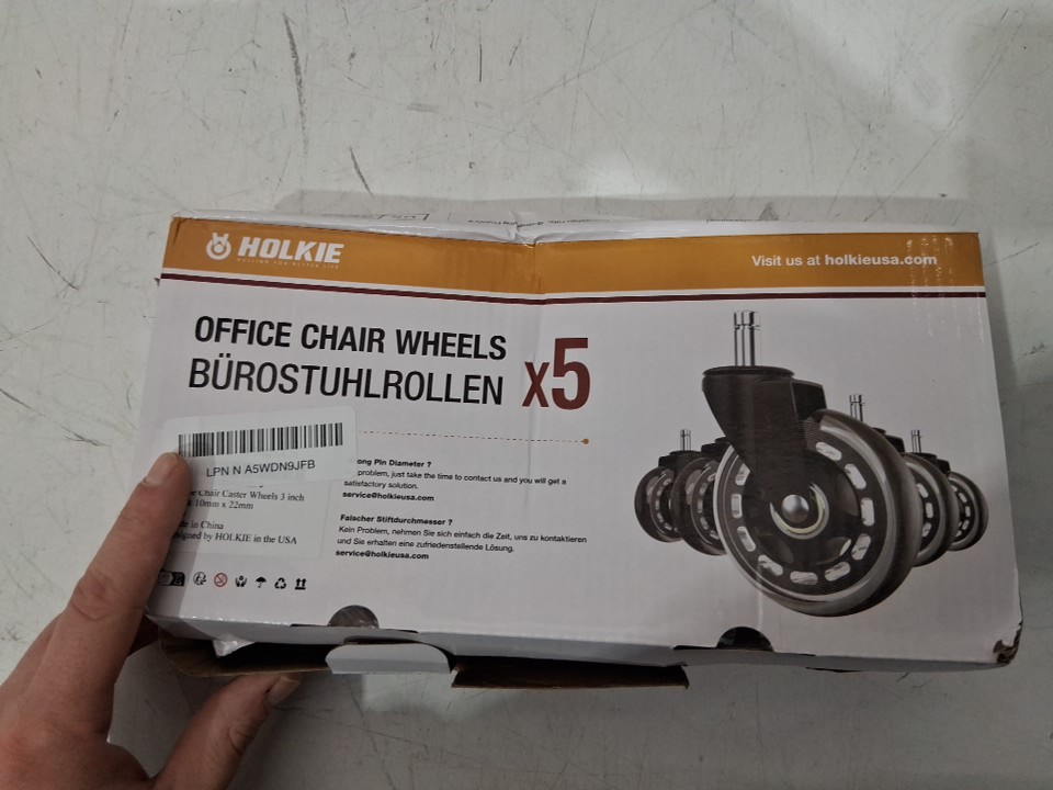 5pk holkie office chair caster roller blade style wheels - 11mm x 22mm - 3"- black