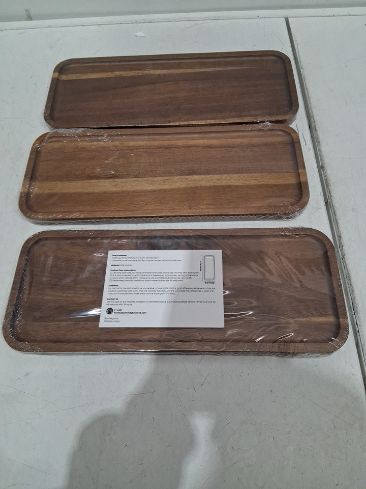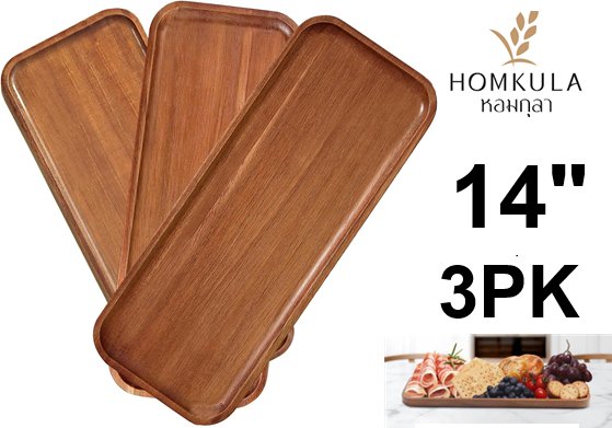 3PK HOMKULA Solid Acacia Wood Serving Tray - 14" - WOOD