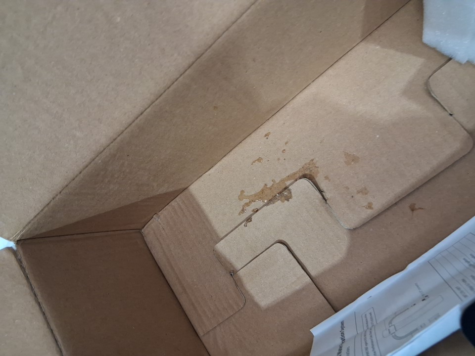 some water found in the box and slight scratching on the back of the item indicating prior use