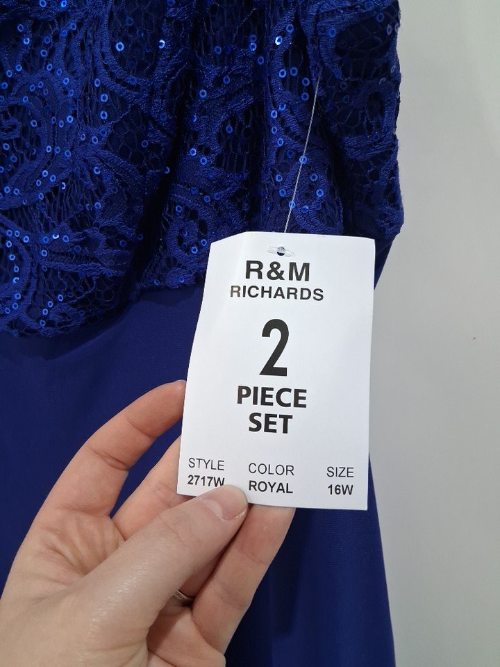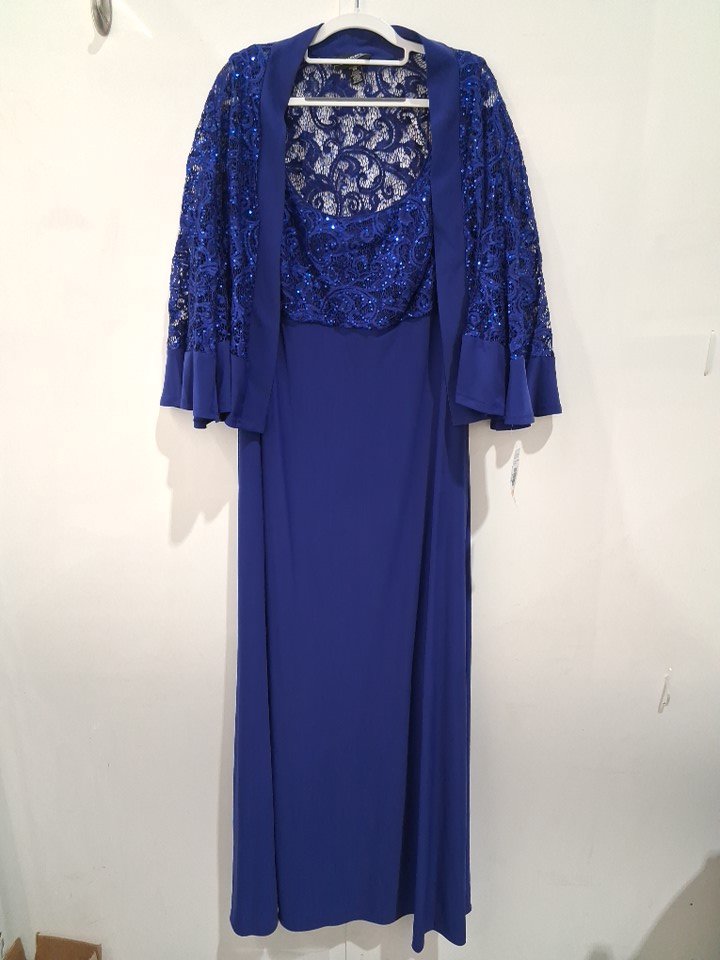 2PC WOMEN'S R&M Richards Long sleeveless sequin mother of the bride/groom event gownDress with lightweight Jacket - 16w - royal blue (style: 2717w)