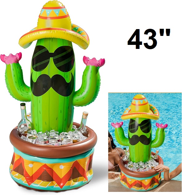 sloosh Inflatable Cactus Cooler with Sombrero Hat for Fiesta - 43" - green (model: 40059)