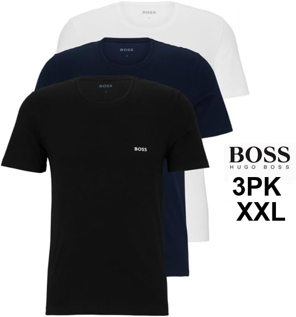 3pk men's hugo boss pure cotton fabric classic crew neck t-shirts - XXL- black/navy/white