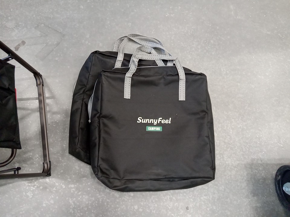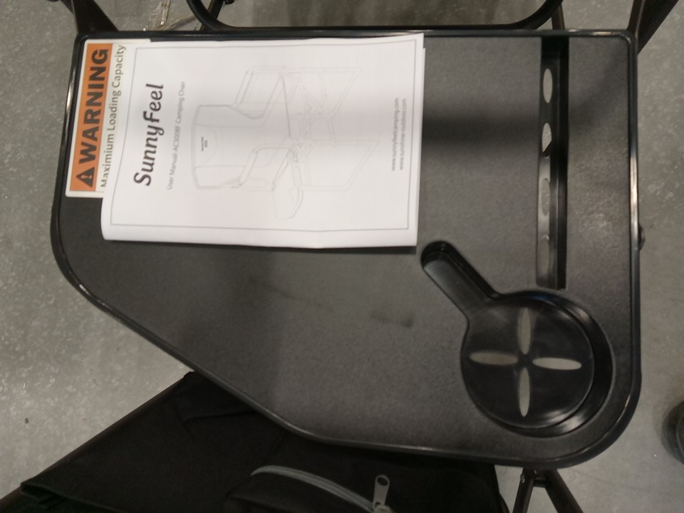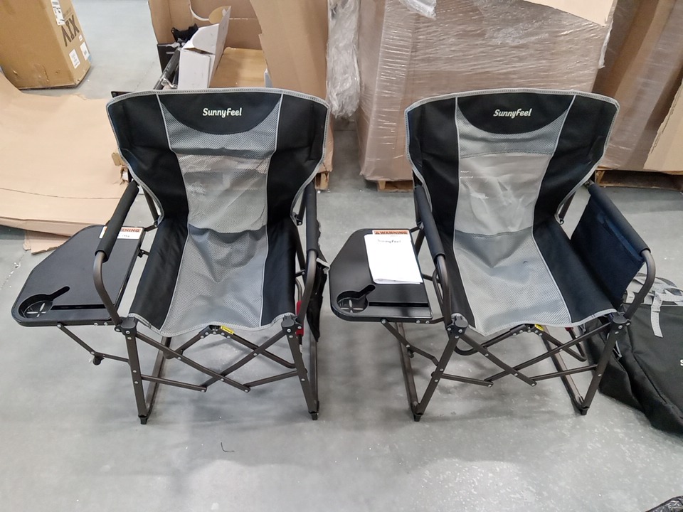 2PK SUNNYFEEL Heavy Duty Oversized Portable Folding Camping Directors Chair with Side Table AND CARRYING BAG - 500LBS CAP - BLACK/GREY (MODEL: ‎AC3008F)