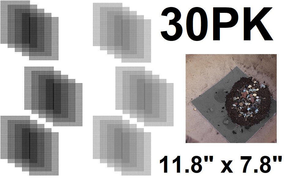 30PK Garden Plant Pot Drainage Screens Bonsai Bottom Grid Mat FOR SOIL LOSS PREVENTION - 7.8" X 11.8" - GREY/BLACK