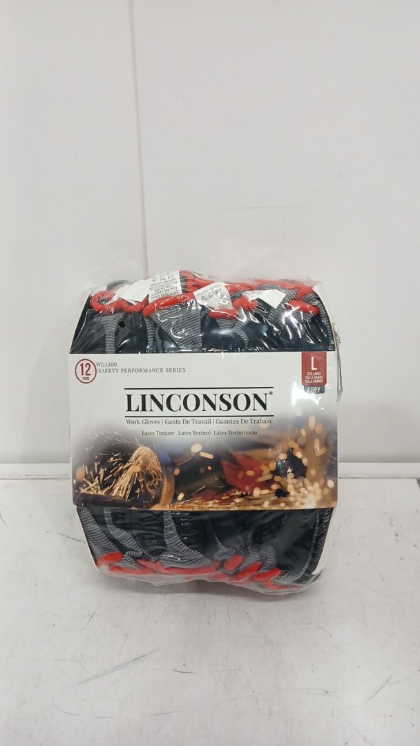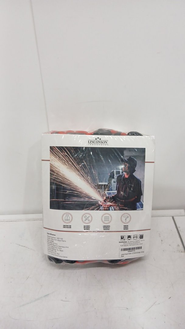 12PR UNISEX ADULTS LINCONSON Safety Performance Series Latex Work Gloves - LARGE - GREY/RED