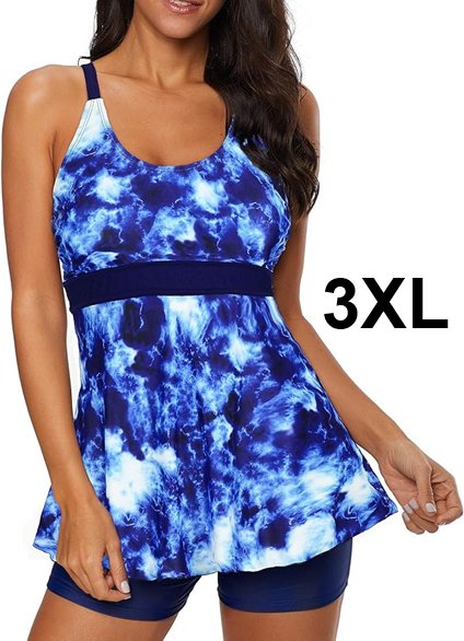 2pc American Trends Tankini swin suit with boy shorts and halter top - 3xl - blue tie dye