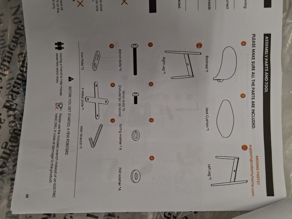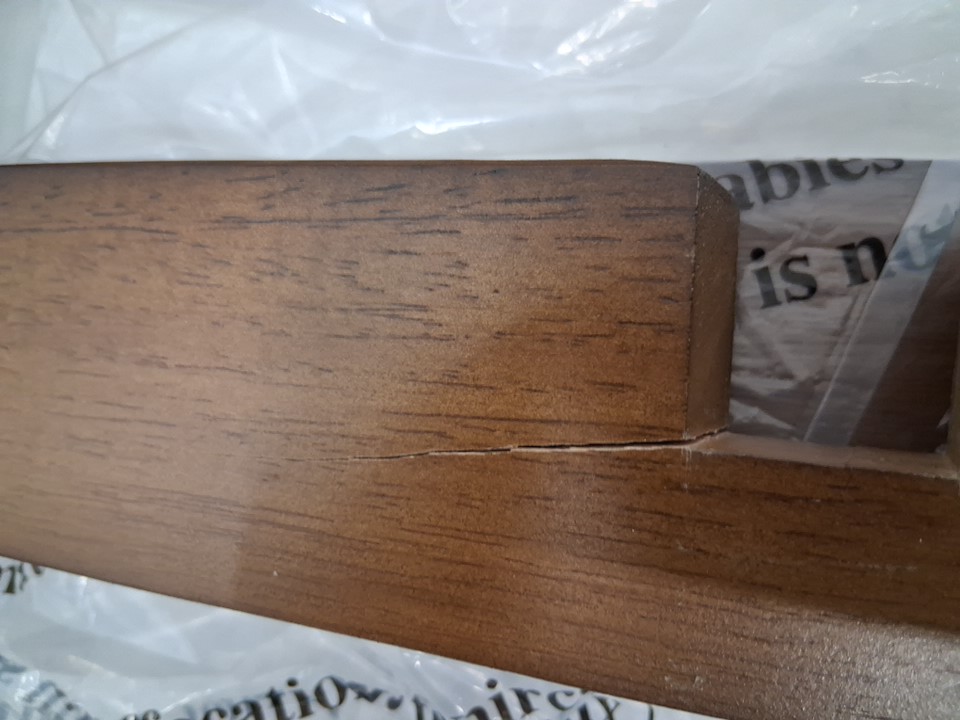 Please See Photos: - There is a small crack on one of the chair bases. This should not affect function and should be easily ignored once assembled.