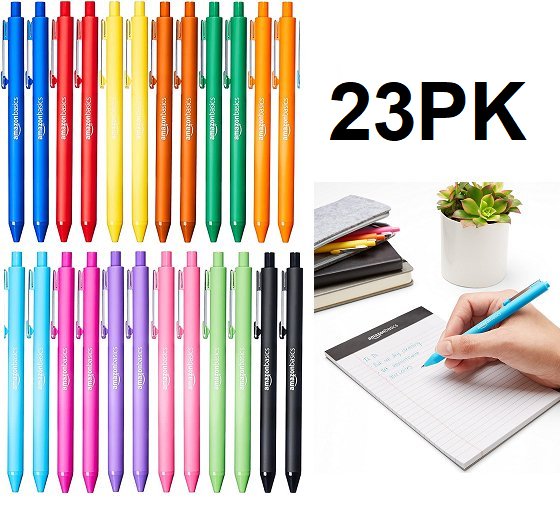 23PK AMAZON BASICS RETRACTABLE BALLPOINT PENS - ASSORTED COLOURS