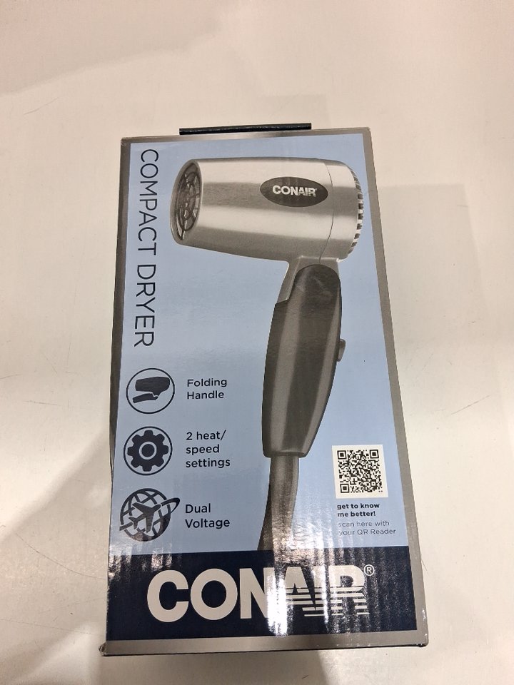 Conair compact travel hair blow dryer with folding handle - 1600W - Grey (model: 124NPC)