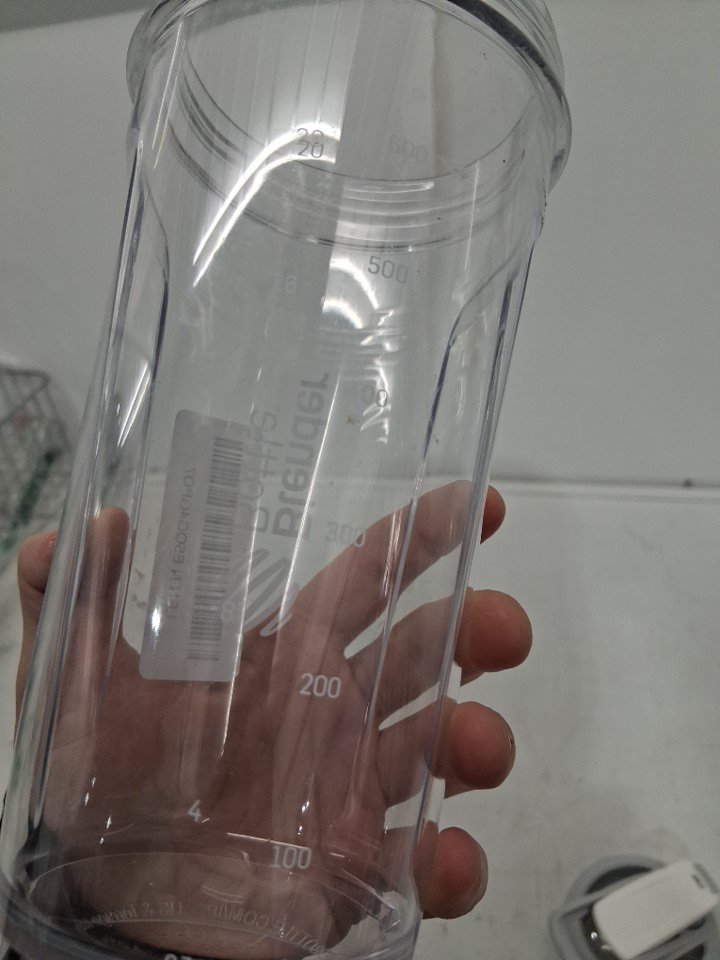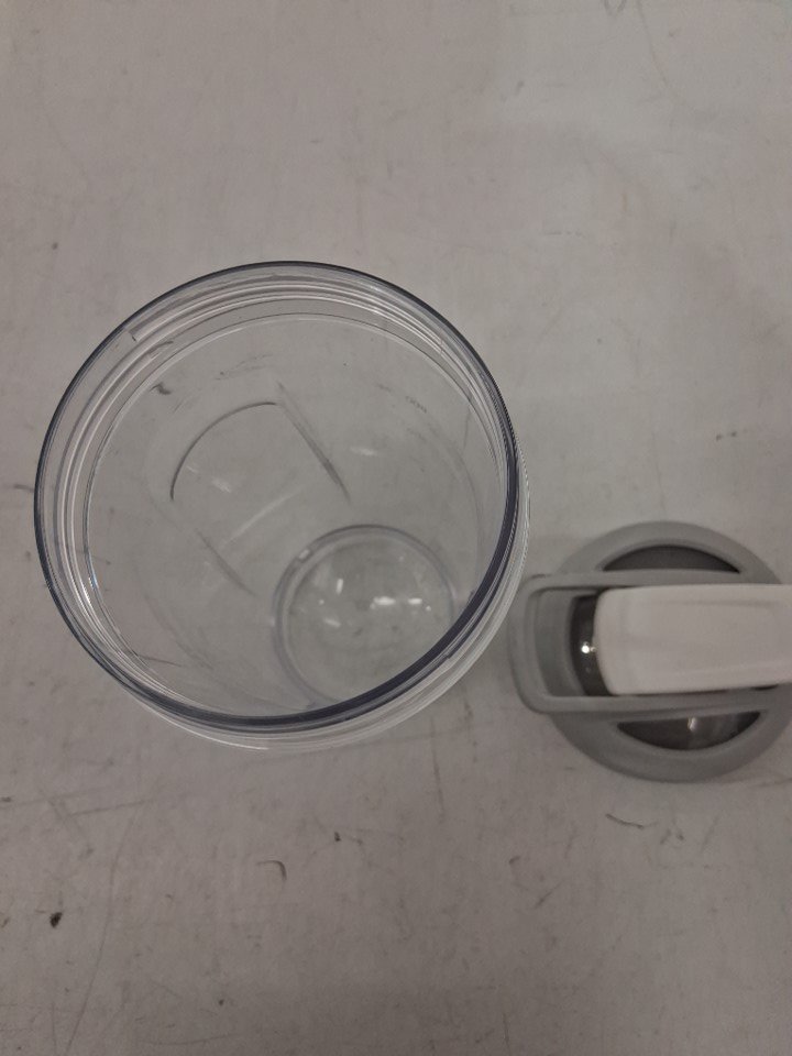 Blender bottle has water spots on it, and mixer ball is missing