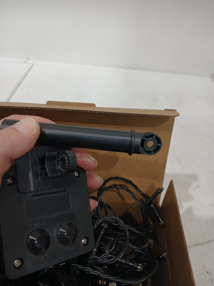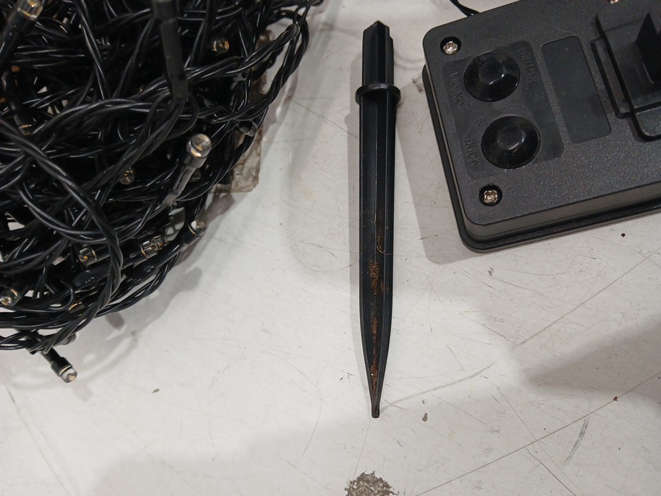 Tested for power. Lights were not fully charged and did not stay on long enough to photograph. Stake need a crew to reattach to the panel. Has some dirt on the stake.