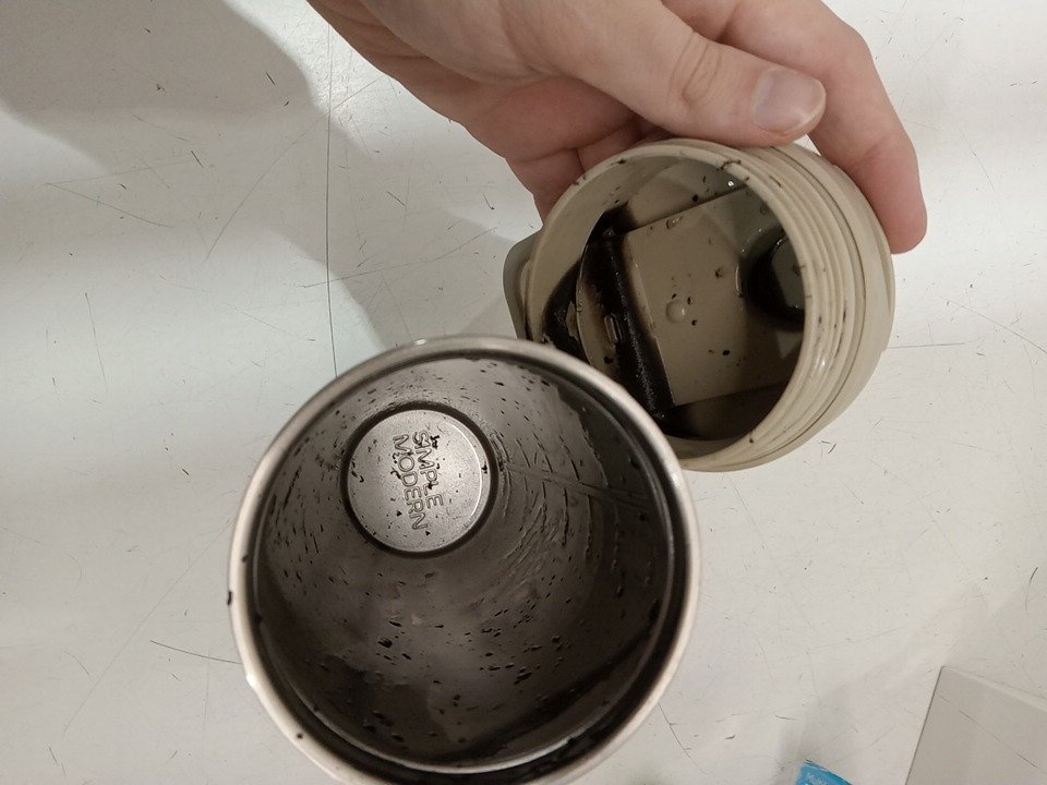 Missing the blender ball, residue on the inside and some marks on the outside from previous use. The residue does appear to come off.