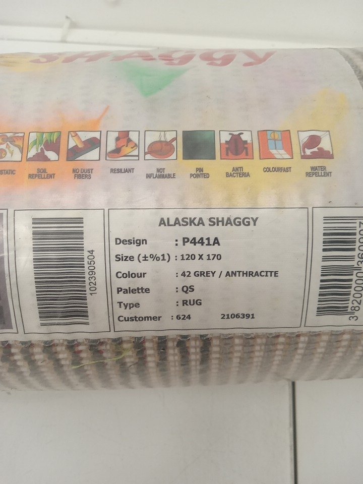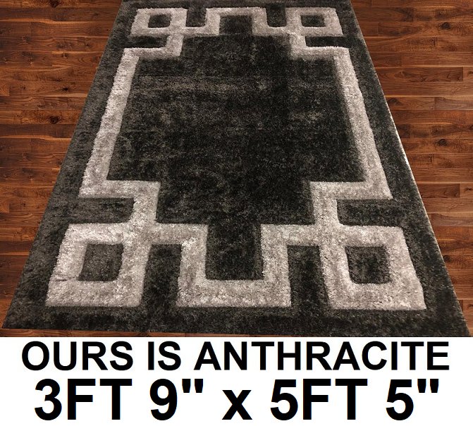 ELITE CARPET & RUGS ALASKA SHAGGY COLLECTION TEXTURED BORDERED AREA RUG - 3FT 9" X 5FT 5" - ANTHRACITE / GREY (MODEL: P441A)