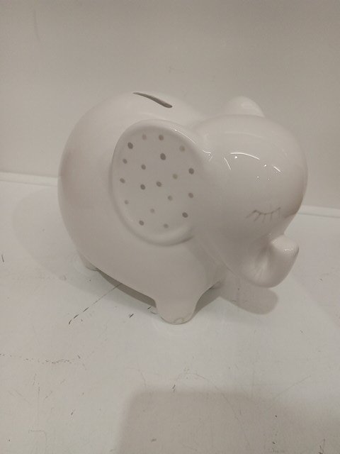Pearhead Ceramic elephant Piggy Bank -5" -white/polka dots (model:83071)