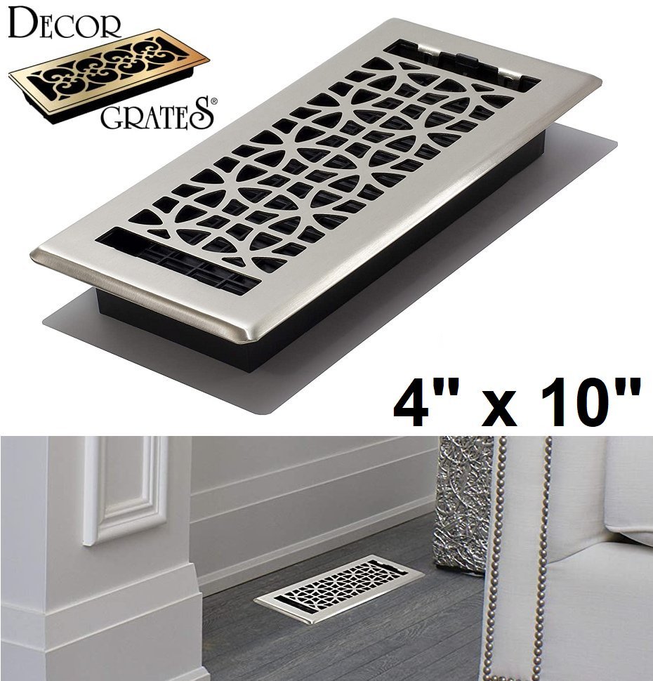 DECOR GRATES Eclipse Plated Floor Register - 4" x 10" - Brushed Nickel (MODEL: ECH410-NKL)