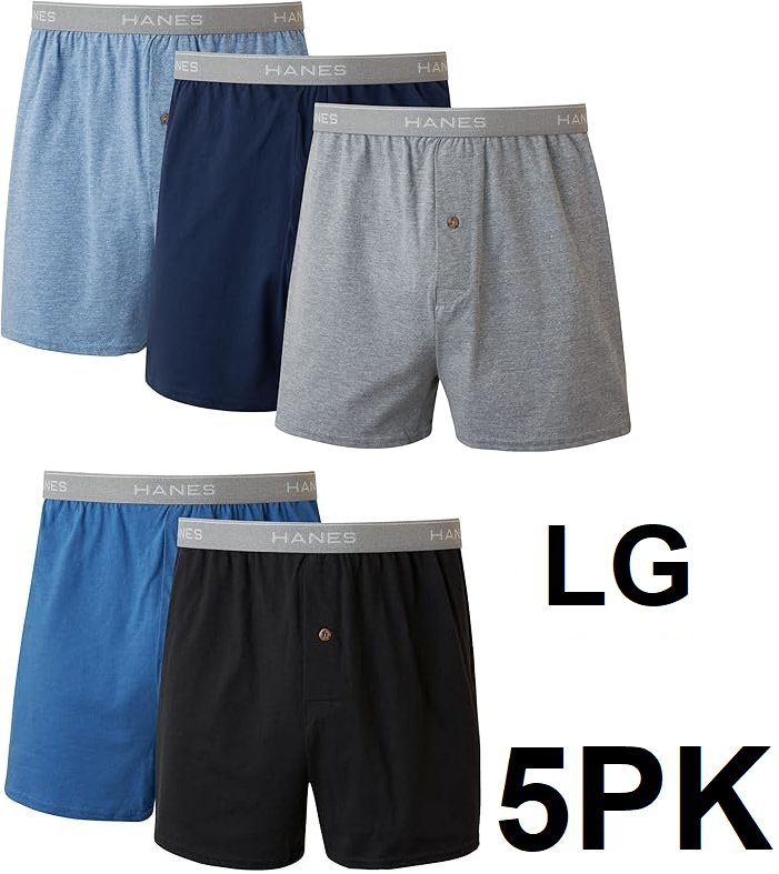 5PK MEN'S HANES COMFORTSOFT WITH COMFORTABLE FLEX WAISTBAND BOXERS - large - BLUE/GREY/BLACK (style: 548BX5)