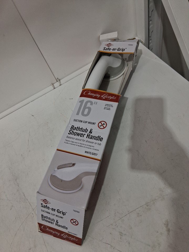 MHI SAFE-ER-GRIP SHOWER & BATHTUB SUCTION GRAB BAR HANDLE - 16" - WHITE/GREY