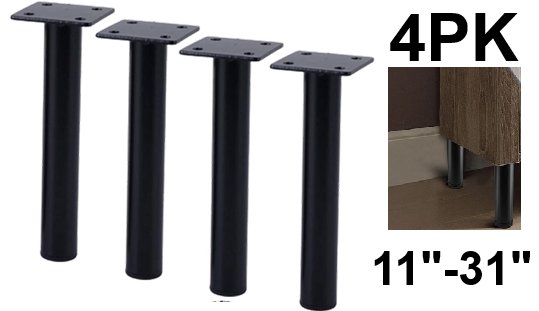 4PK Metal Dumb ADJUSTABLE Round Furniture Legs - 11" -31" - BLACK