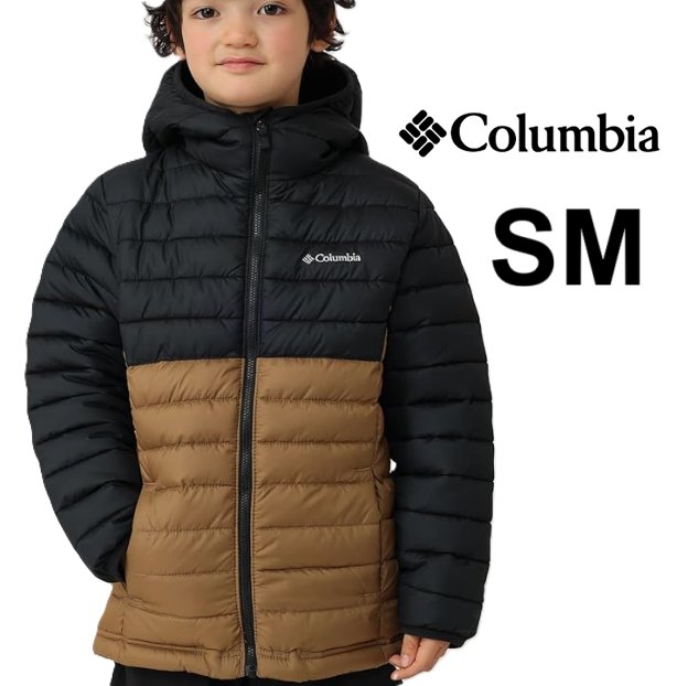 children's columbia powder light II hooded jacket coat- small- black/brown (style: sb2646)