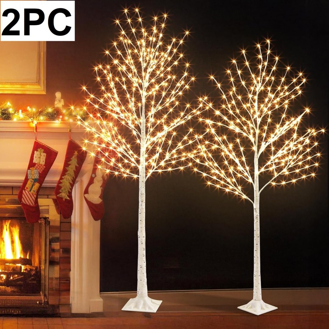 2PC EAMBRITE Christmas Decor Lighted Birch Tree - 5FT & 6FT - WHITE
