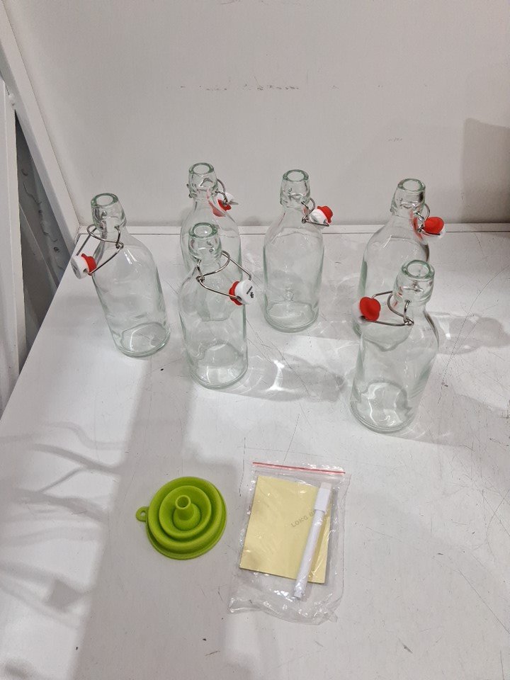 6pk YEBODA Clear Glass Beer Bottles for Home Brewing with Easy Wire Swing Cap and Airtight Silicone Seal - 16oz