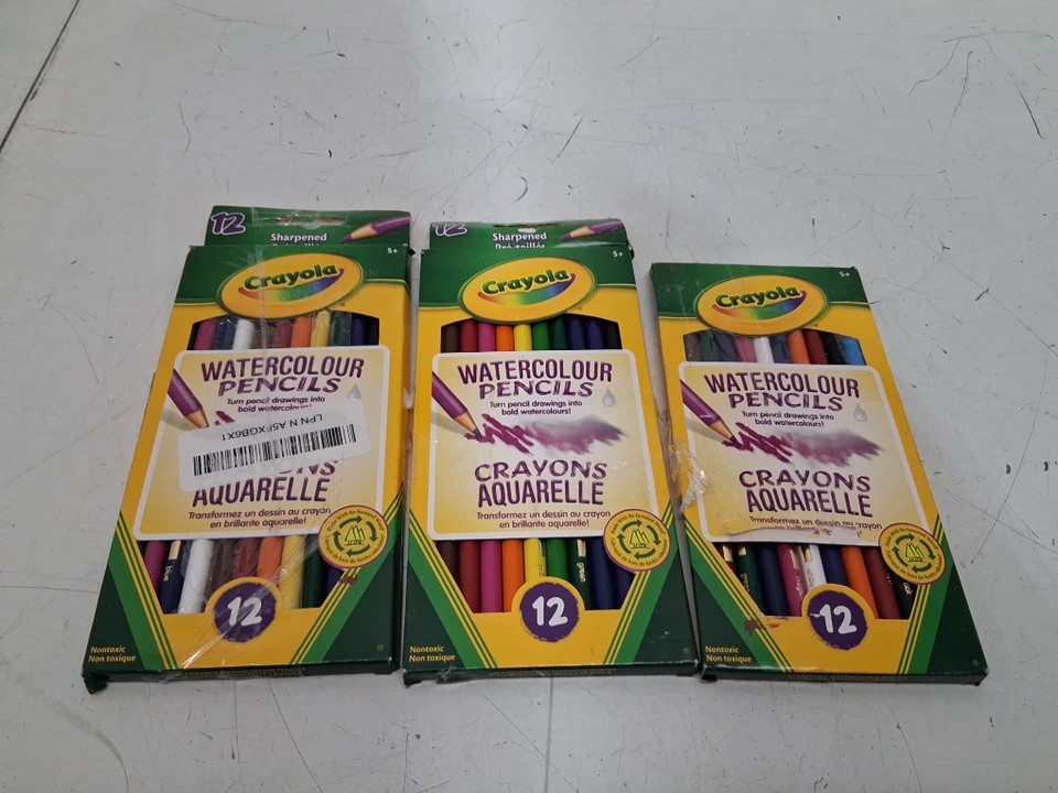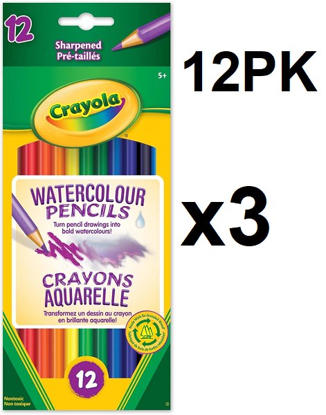 3 (12pk) Crayola watercolour pencils Sharpened - Multicolour